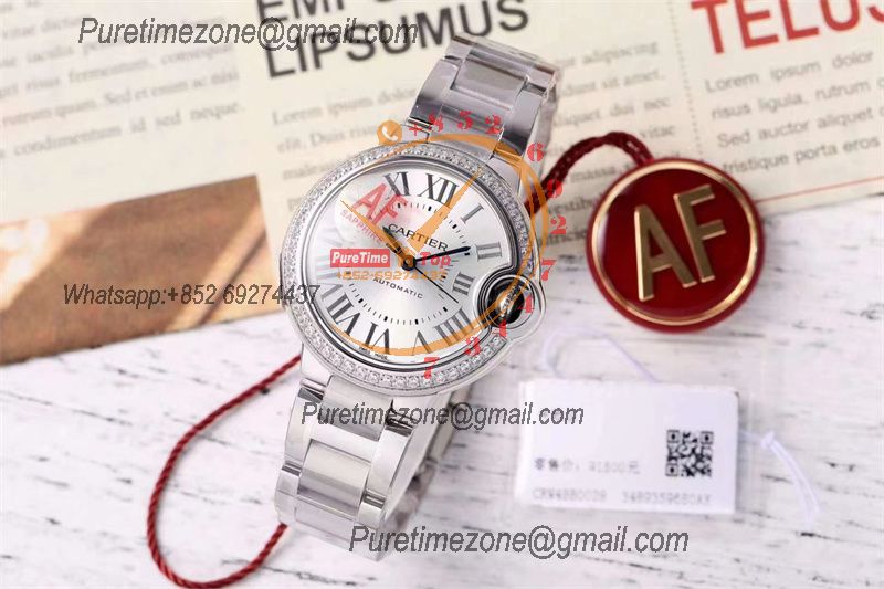 Ballon Bleu WE9006Z3 36 NH05 Automatic Womens Watch Best Edition AF Diamond Bezel Silver Dial Stainless Steel Bracelet