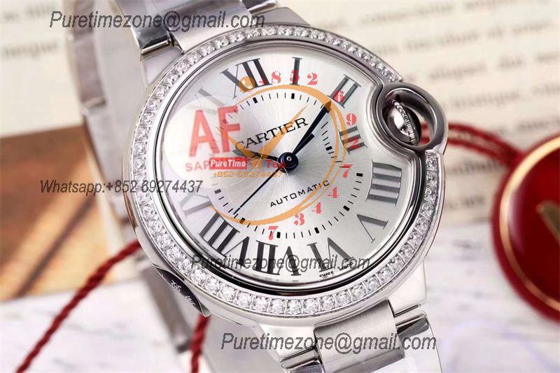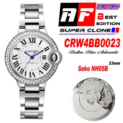 Home Cartier Ball Bleu de Cartier Ballon Bleu W4BB0023 SEIKO NH05A Automatic Womens Watch Best Edition AF 33mm Diamond Bezel Silver Dial SS Bracelet