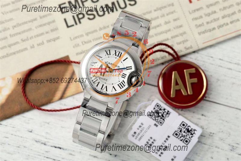Ballon Bleu W69012Z4 42mm A2824 Automatic Mens Watch Best Edition AF Silver Roman Dial Stainless Steel Bracelet