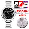 Ballon Bleu W69012Z4 42mm A2824 Automatic Mens Watch Best Edition AF Black Roman Dial Stainless Steel Bracelet