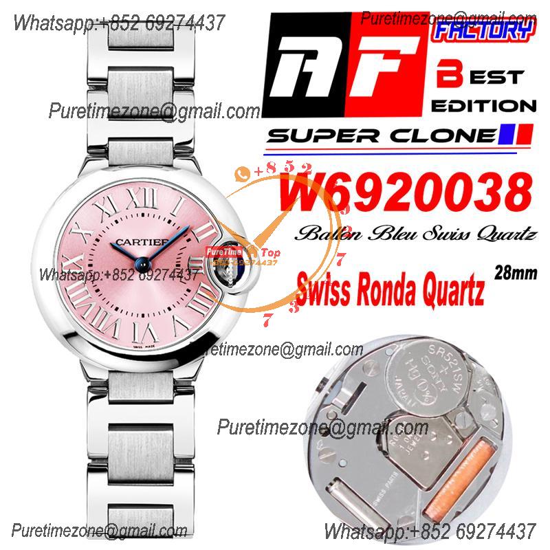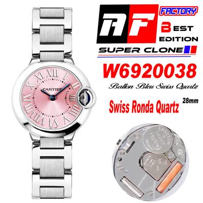 Home Cartier Ball Bleu de Cartier Ballon Bleu W6920038 Ronda Quartz Womens Watch Best Edition AF 28mm Pink Dial SS Bracelet