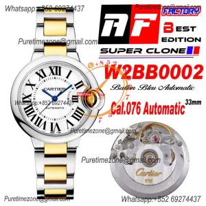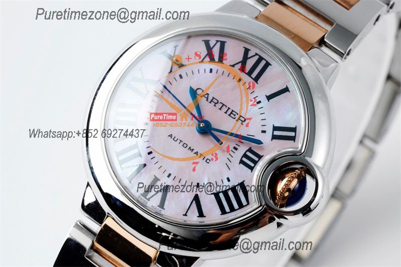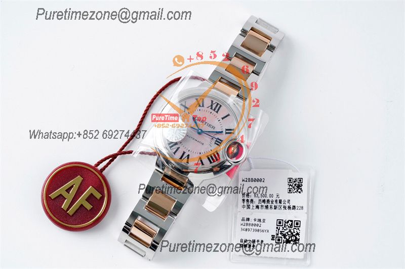 Home Cartier Ball Bleu de Cartier Ballon Bleu W6920070 Cal.076 Automatic Womens Watch Best Edition AF 33 Two Tone RG Pink Dial Stainless Steel Bracelet
