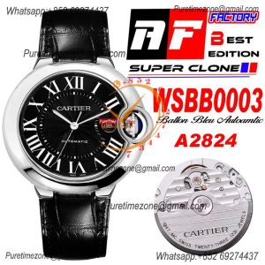 Ballon Bleu WSBB0003 42mm A2824 Automatic Mens Watch Best Edition AF Steel Case Black Dial Leather Strap