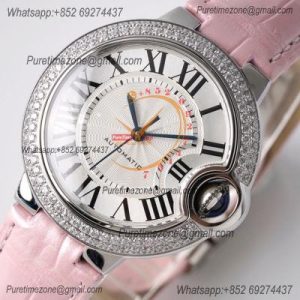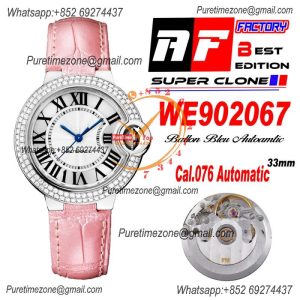Ballon Bleu WE902067 Cal.076 Automatic Womens Watch Best Edition AF 33mm Diamond Bezel Pink Dial Leather Strap