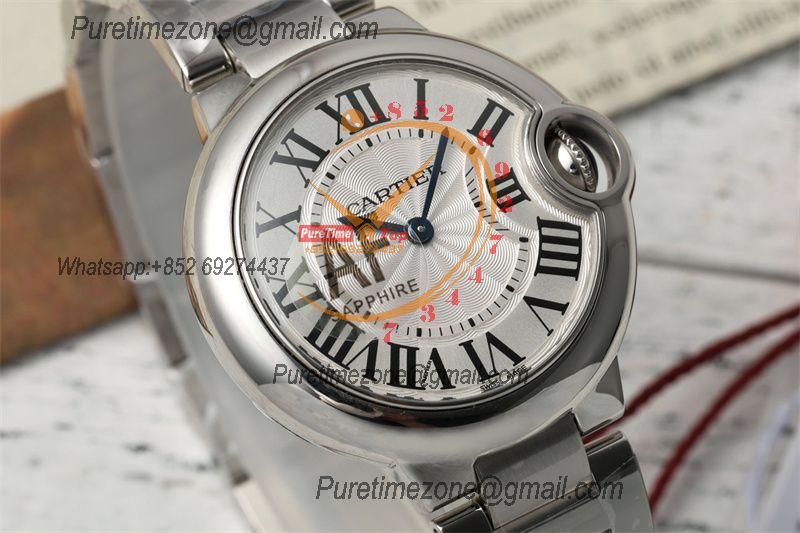 Ballon Bleu WSBB0026 42mm A2824 Automatic Mens Watch Best Edition AF Silver Dial Black Leather Strap