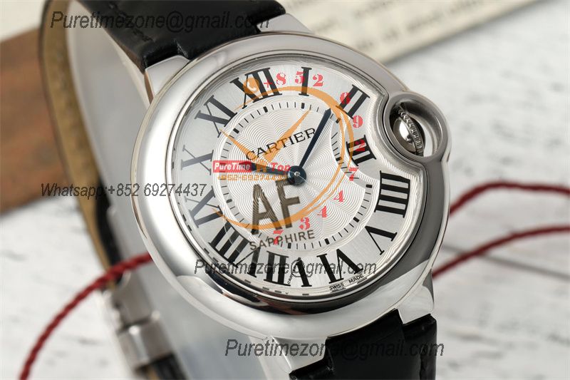 Ballon Bleu WSBB0026 42mm A2824 Automatic Mens Watch Best Edition AF Silver Dial Black Leather Strap