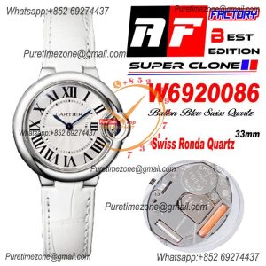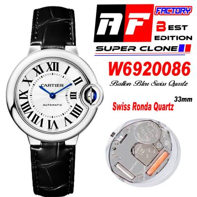 Home Cartier Ball Bleu de Cartier Ballon Bleu W6920086 Ronda Quartz Womens Watch Best Edition AF 33mm SteeL Case Silver Dial Black Leather