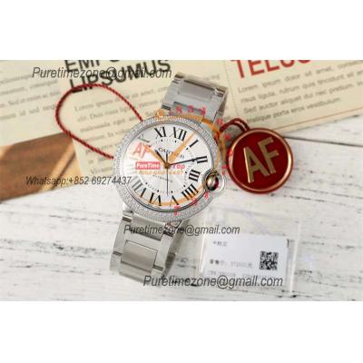 Ballon Bleu WJBB0029 42mm A2824 Automatic Mens Watch Best Edition AF RG Diamond Bezel Silver Dial Brown Leather Strap