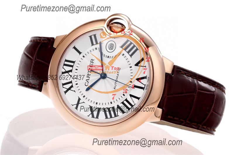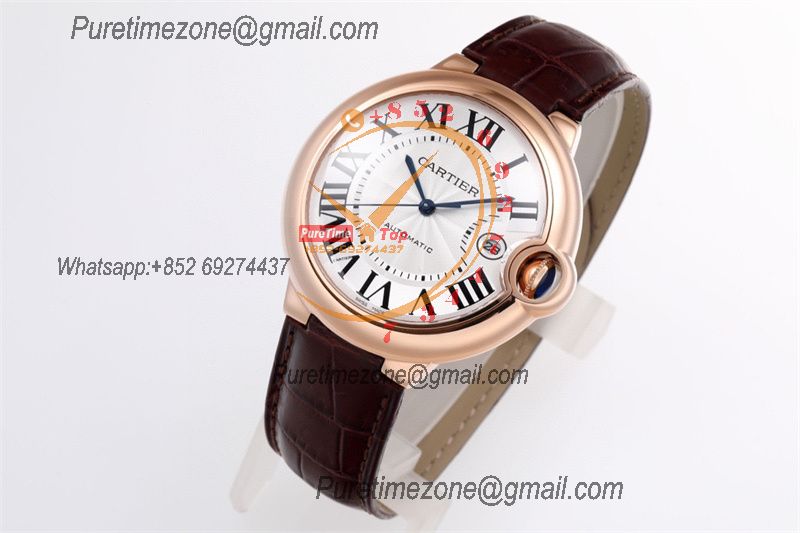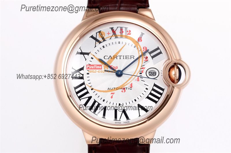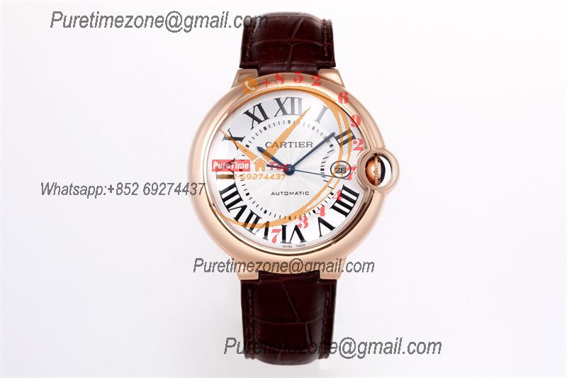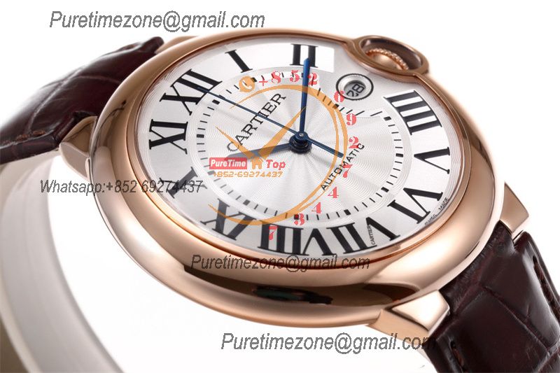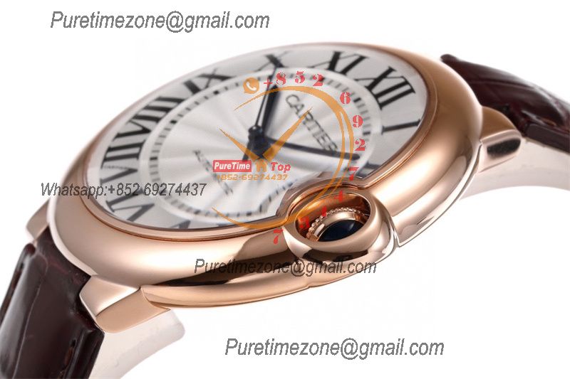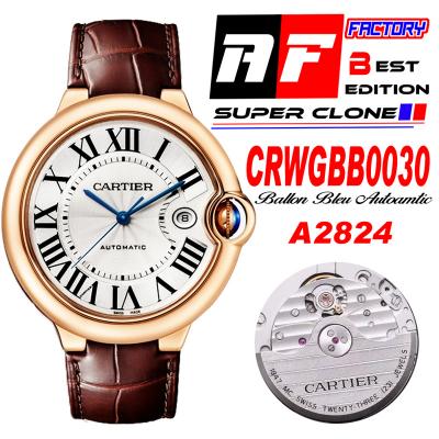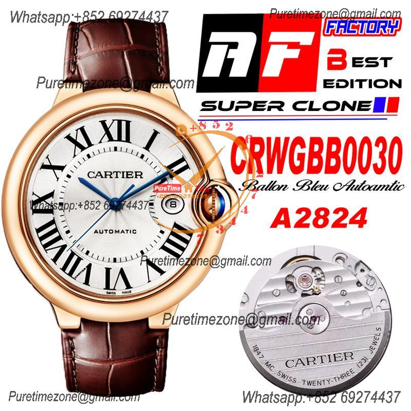Home Cartier Ball Bleu de Cartier Ballon Bleu WGBB0030 42mm A2824 Automatic Mens Watch Best Edition AF RG Silver Dial Brown Leather Strap