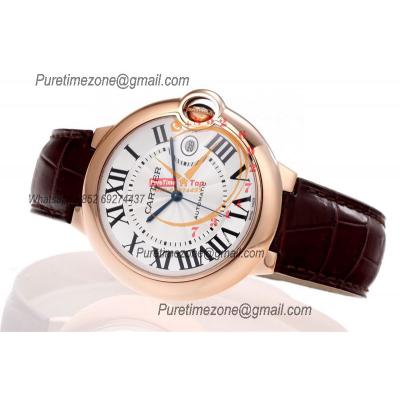 Ballon Bleu WGBB0030 42mm A2824 Automatic Mens Watch Best Edition AF RG Silver Dial Brown Leather Strap