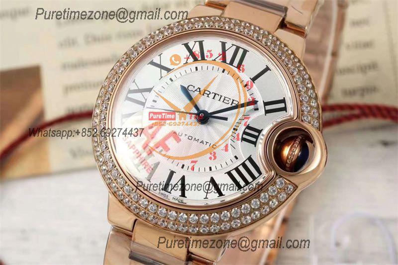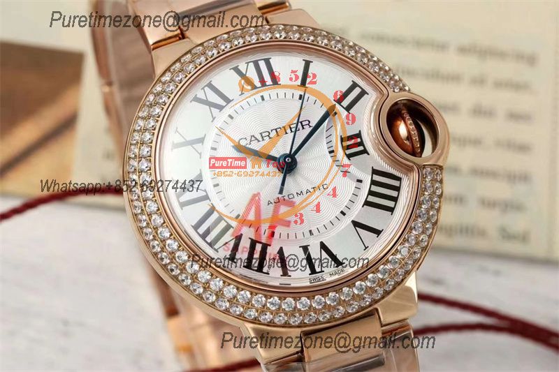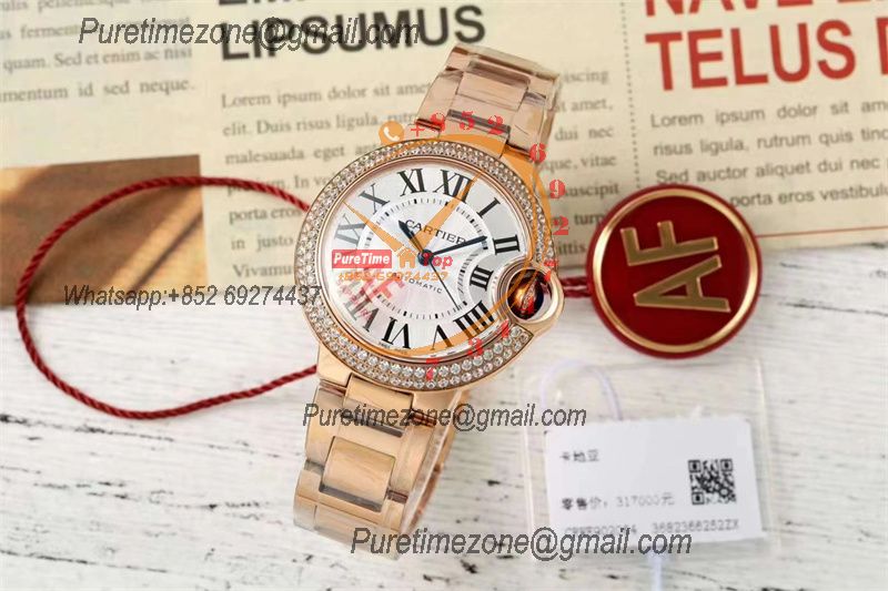 Home Cartier Ball Bleu de Cartier Ballon Bleu WJBB0066 SEIKO NH05A Automatic Womens Watch Best Edition AF 33 Diamond Bezel RG Silver Dial SS Bracelet