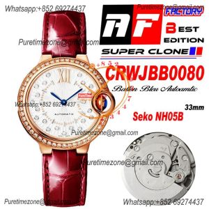 Ballon Bleu WJBB0080 SEIKO NH05A Automatic Womens Watch Best Edition AF 33 Diamond Bezel RG Silver Dial Red Leather $480.00 $400.00