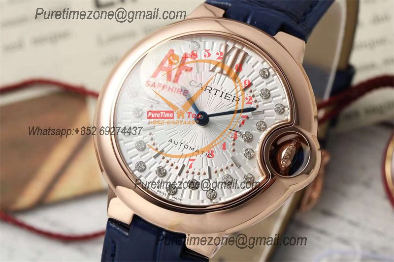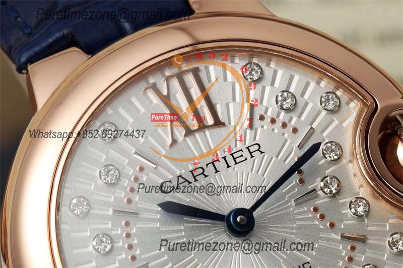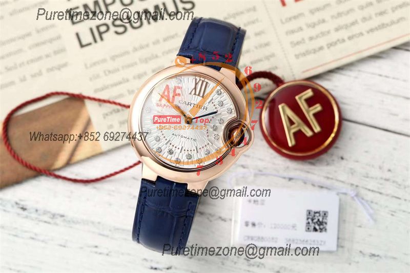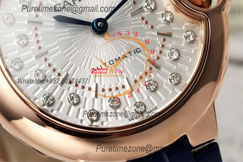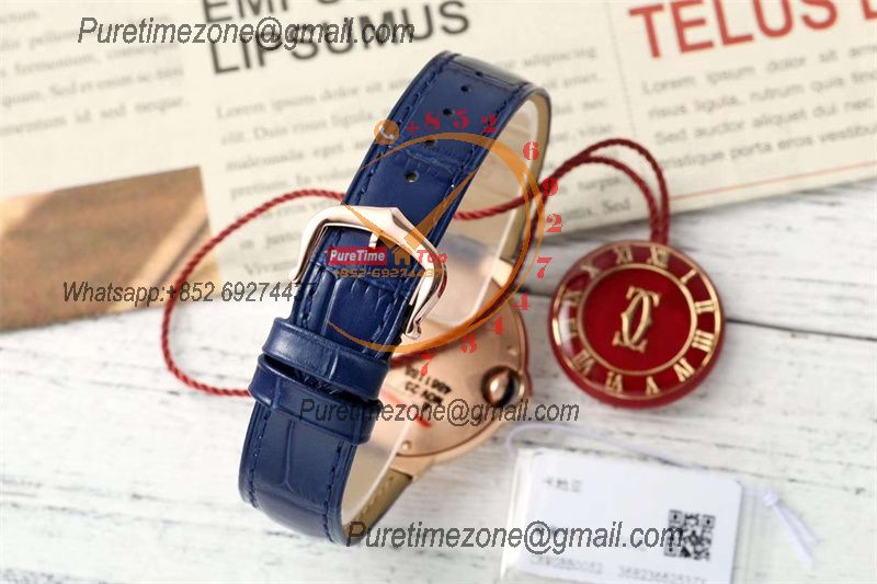 Home Cartier Ball Bleu de Cartier Ballon Bleu WJBB0080 SEIKO NH05A Automatic Womens Watch Best Edition AF 33 Rose Gold Silver Dial Blue Leather