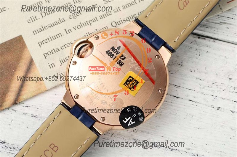 Ballon Bleu WGBB0036 42mm A2824 Automatic Mens Watch Best Edition AF Rose Gold Blue Dial Leather Strap