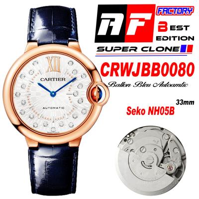 Home Cartier Ball Bleu de Cartier Ballon Bleu WJBB0080 SEIKO NH05A Automatic Womens Watch Best Edition AF 33 Rose Gold Silver Dial Blue Leather