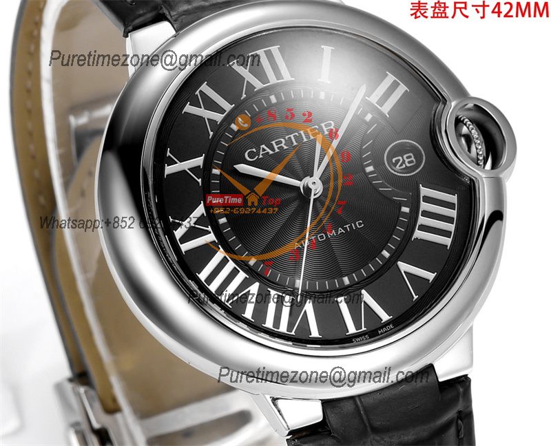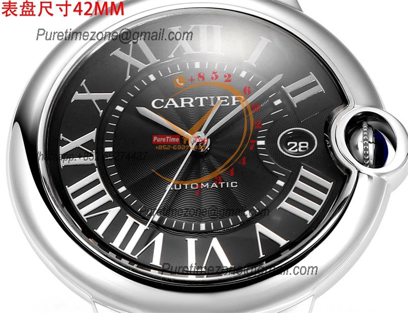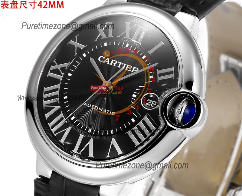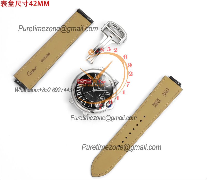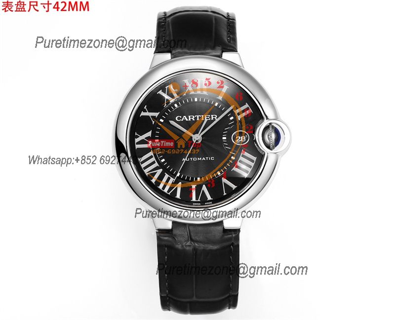 Home Cartier Ball Bleu de Cartier Ballon Bleu WSBB0003 42mm A2824 Automatic Mens Watch Best Edition CHF Black Dial Leather Strap CHS