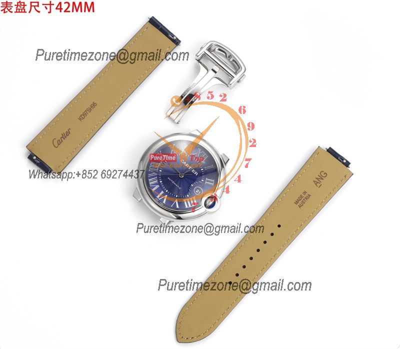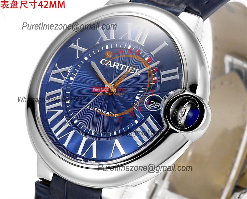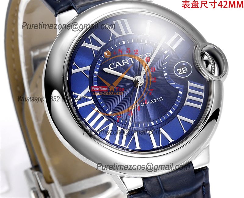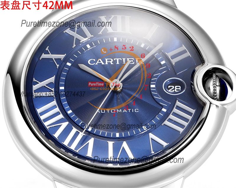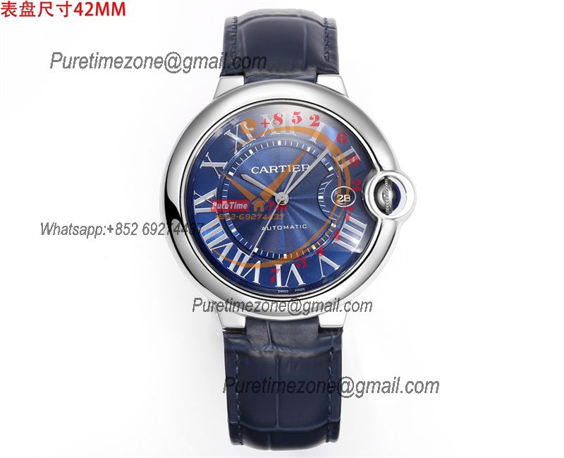 Home Cartier Ball Bleu de Cartier Ballon Bleu WSBB0027 42mm A2824 Automatic Mens Watch Best Edition CHF Blue Dial Leather Strap CHS