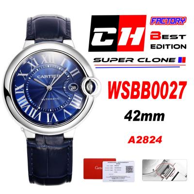 Home Cartier Ball Bleu de Cartier Ballon Bleu WSBB0027 42mm A2824 Automatic Mens Watch Best Edition CHF Blue Dial Leather Strap CHS