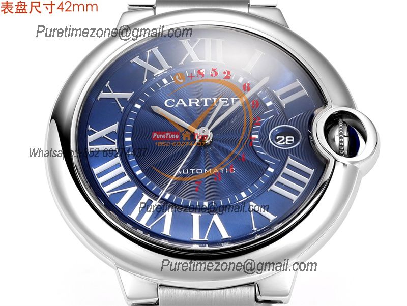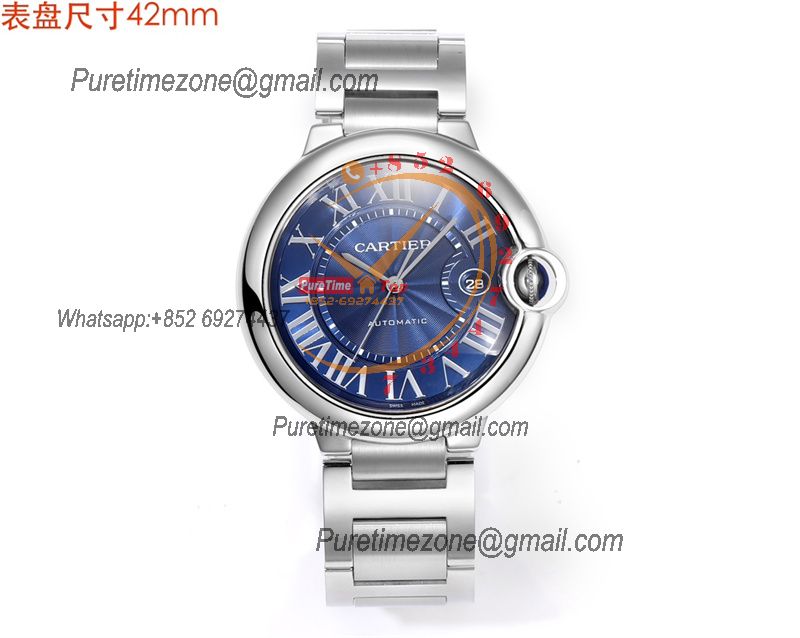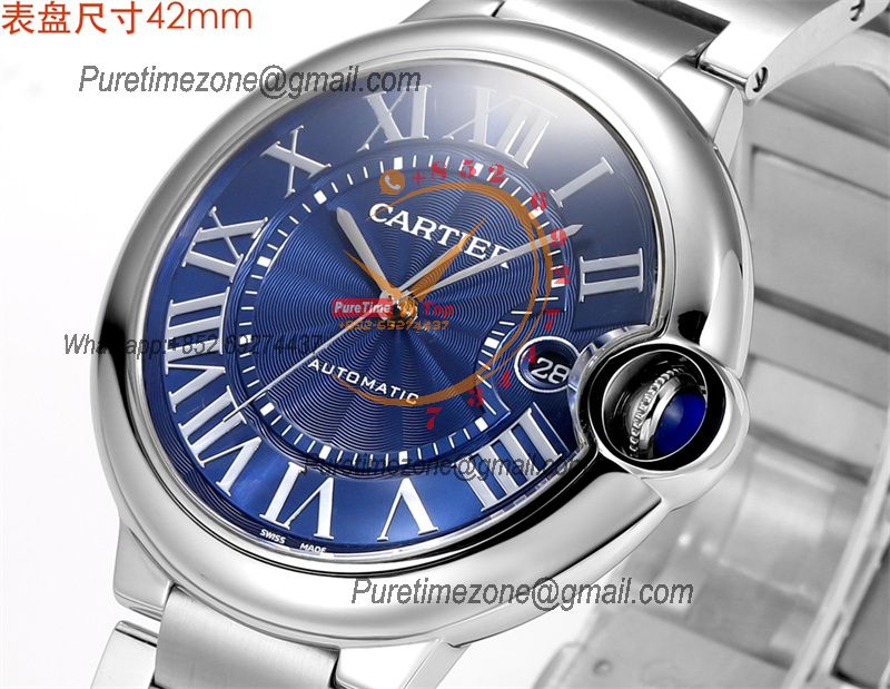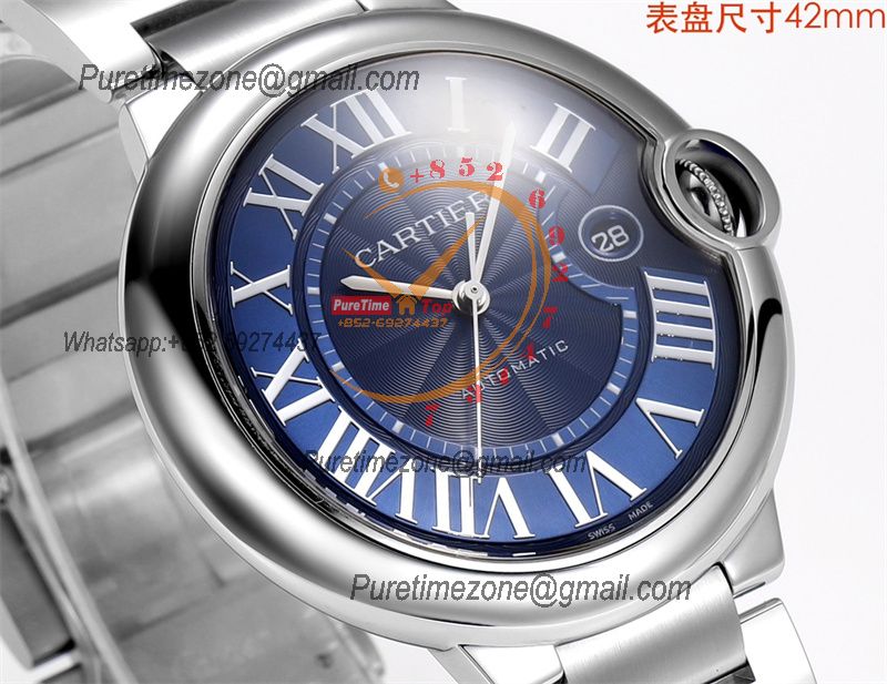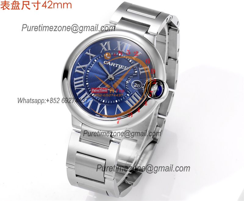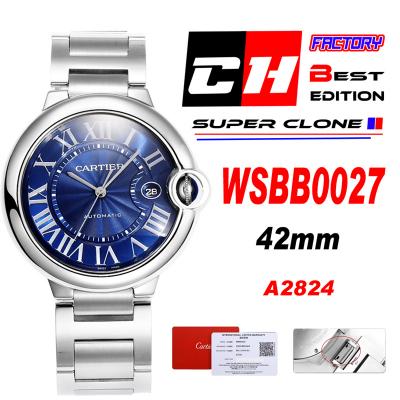 Home Cartier Ball Bleu de Cartier Ballon Bleu WSBB0027 42mm A2824 Automatic Mens Watch Best Edition CHF Blue Dial Stainless Steel Bracelet CHS