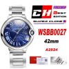 Ballon Bleu WSBB0027 42mm A2824 Automatic Mens Watch Best Edition AF Steel Case Blue Dial Leather Strap