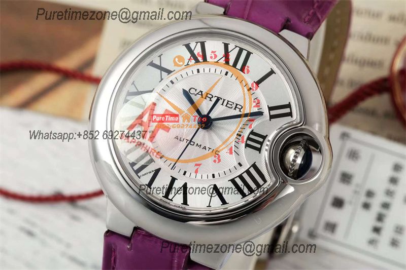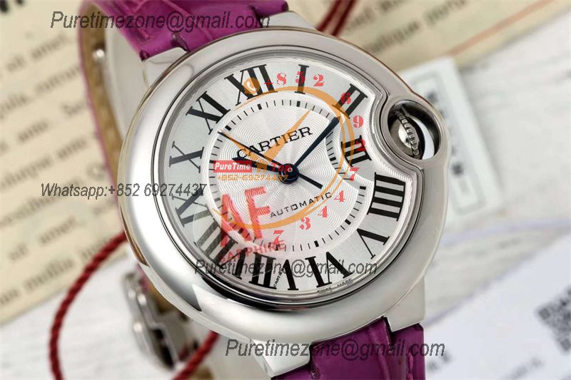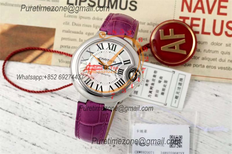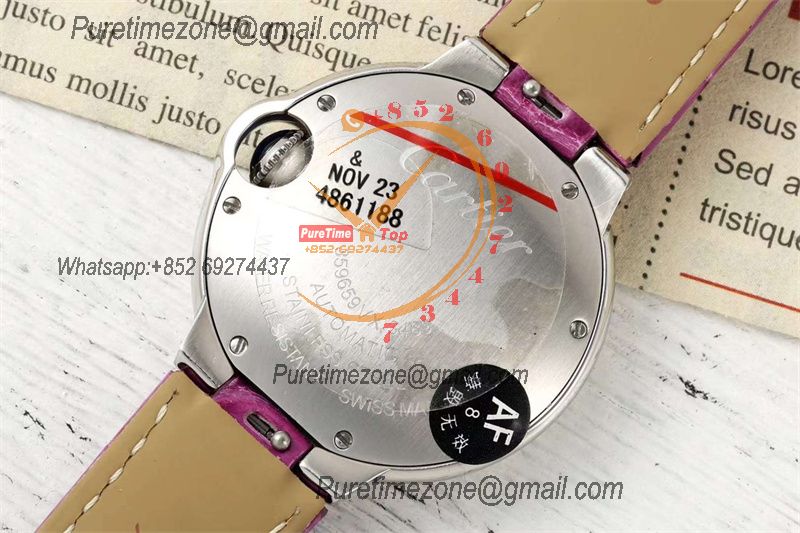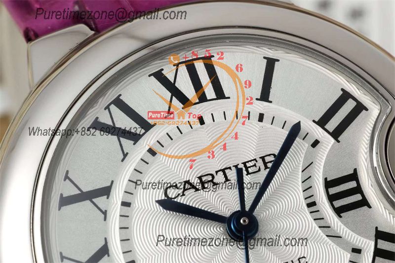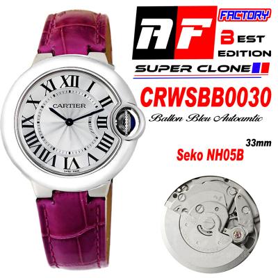 Home Cartier Ball Bleu de Cartier Ballon Bleu WSBB0030 SEIKO NH05A Automatic Womens Watch Best Edition AF 33 Steel Case Silver Dial Purple Leather