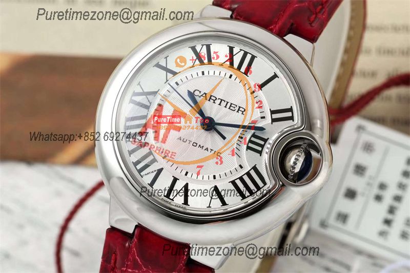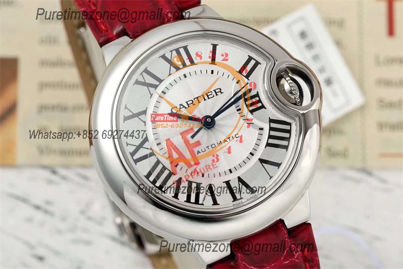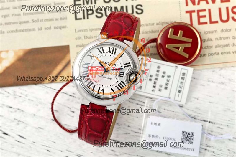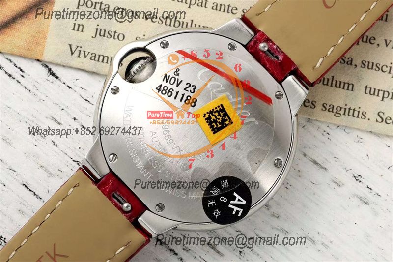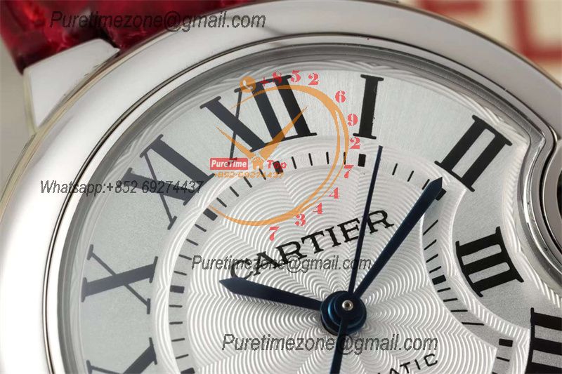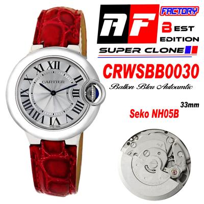 Home Cartier Ball Bleu de Cartier Ballon Bleu WSBB0030 SEIKO NH05A Automatic Womens Watch Best Edition AF 33 Steel Case Silver Dial Red Leather