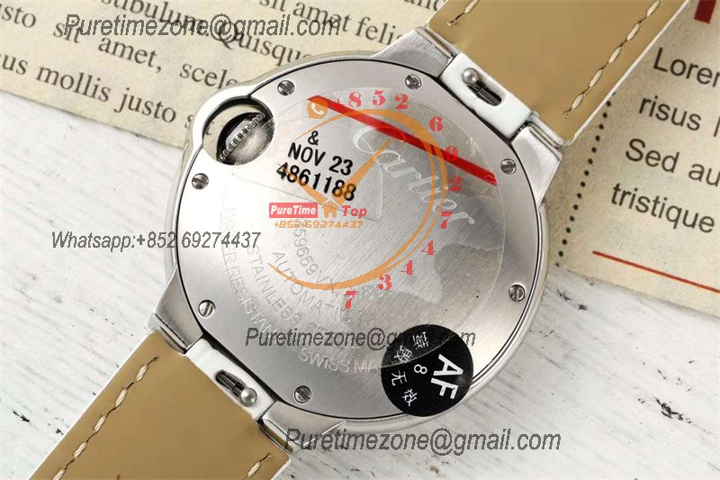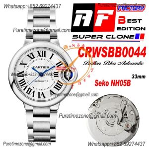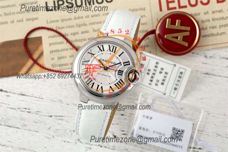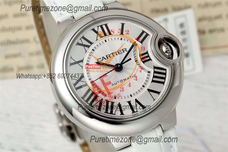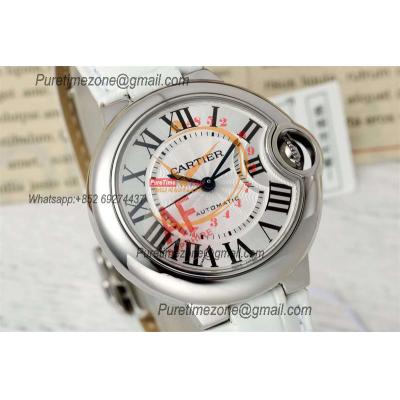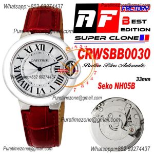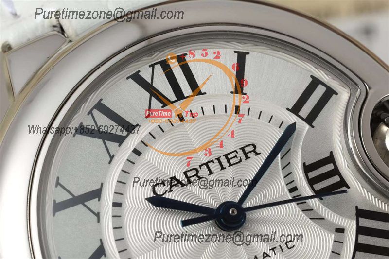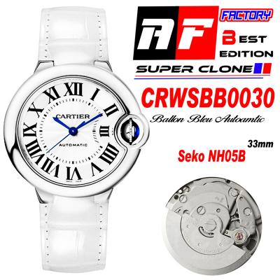 Home Cartier Ball Bleu de Cartier Ballon Bleu WSBB0030 SEIKO NH05A Automatic Womens Watch Best Edition AF 33 Steel Case Silver Dial White Leather
