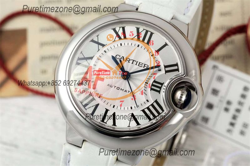 Ballon Bleu WSBB0026 42mm A2824 Automatic Mens Watch Best Edition AF Silver Dial Black Leather Strap