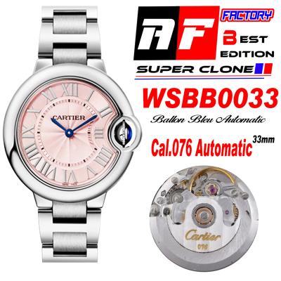 Home Cartier Ball Bleu de Cartier Ballon Bleu WSBB0033 Cal.076 Automatic Womens Watch Best Edition AF 33mm Pink Dial Stainless Steel Bracelet