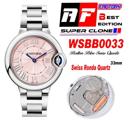 Home Cartier Ball Bleu de Cartier Ballon Bleu WSBB0033 Ronda Quartz Womens Watch Best Edition AF 33mm SteeL Case Pink Dial SS Bracelet
