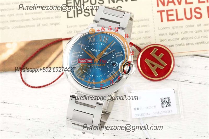 Home Cartier Ball Bleu de Cartier Ballon Bleu WSBB0061 42mm A2824 Automatic Mens Watch Best Edition AF Blue Roman Dial Stainless Steel Bracelet