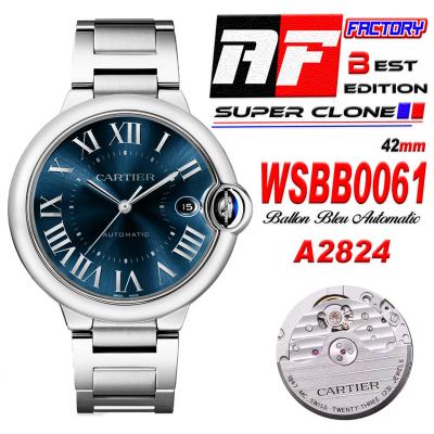 Home Cartier Ball Bleu de Cartier Ballon Bleu WSBB0061 42mm A2824 Automatic Mens Watch Best Edition AF Blue Roman Dial Stainless Steel Bracelet