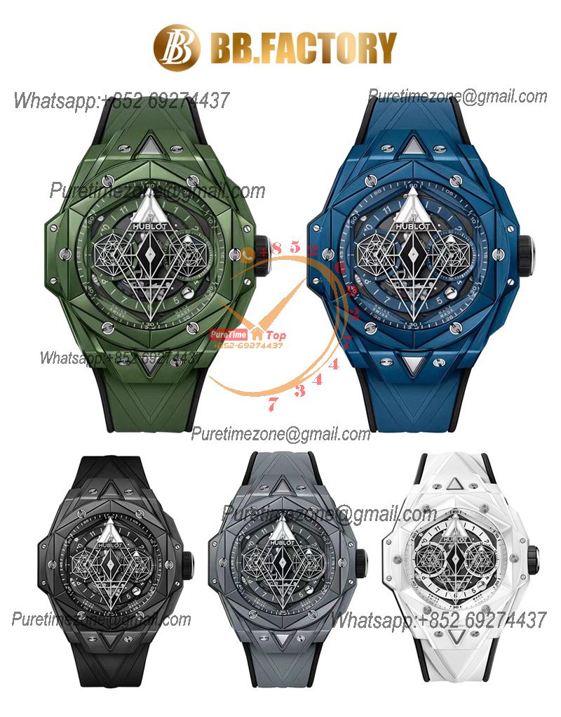 Big Bang Sang Bleu II Blue CeramicA1240 Automatic Chronograph Mens Watch Best Edition BBF 45 Rubber 418.EX.5107