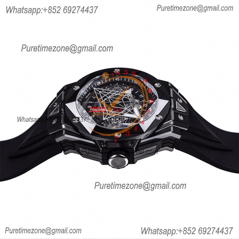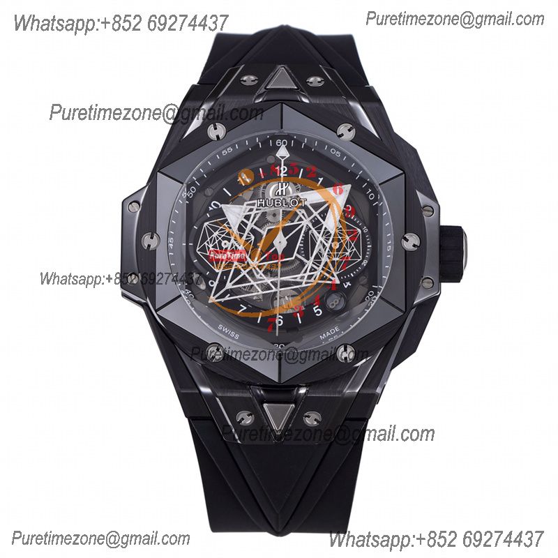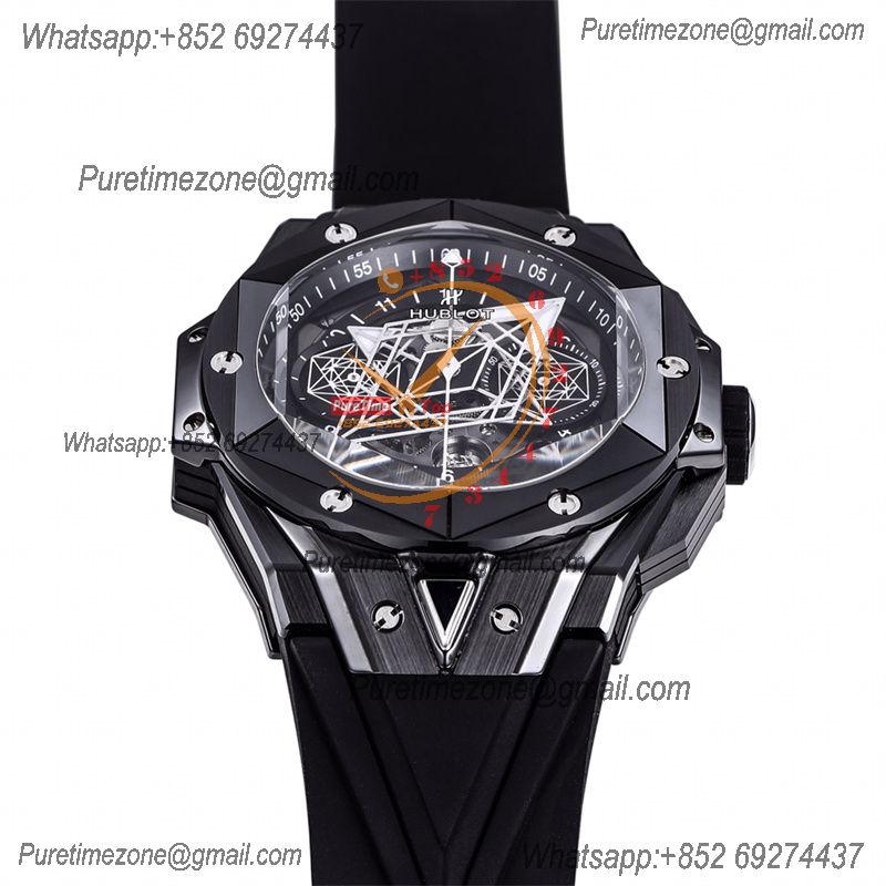 Big Bang Sang Bleu II Black CeramicA1240 Automatic Chronograph Mens Watch Best Edition OLF 45 Red Rubber 418.CX.1107