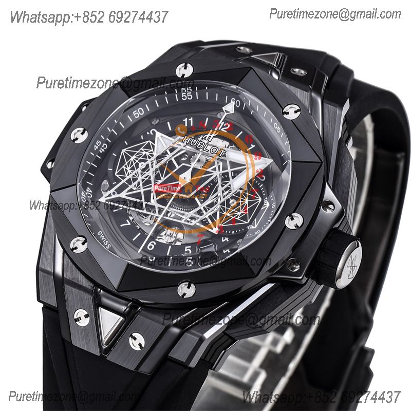 Big Bang Sang Bleu II Black Magic A1240 Automatic Chronograph Mens Watch Best Edition BBF 45 Black Ceramic 418.CX.1107