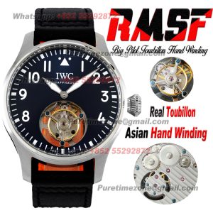 Big Pilot 43 Tourbillon Wind Mens Watch RMSF Best Edition White Dial on Black Leather Strap