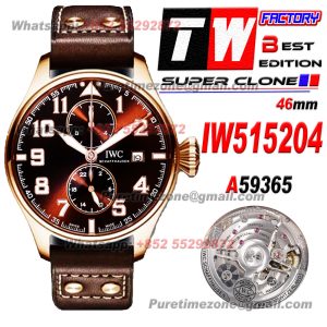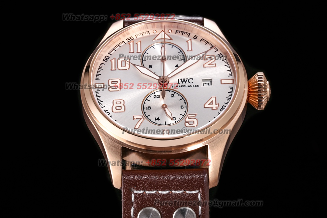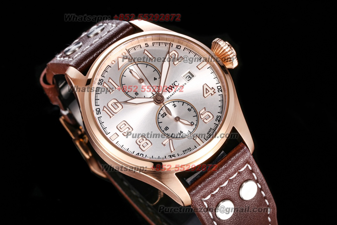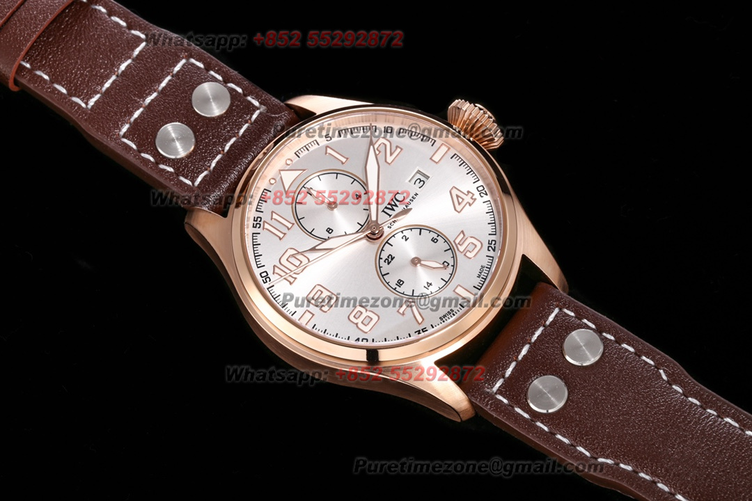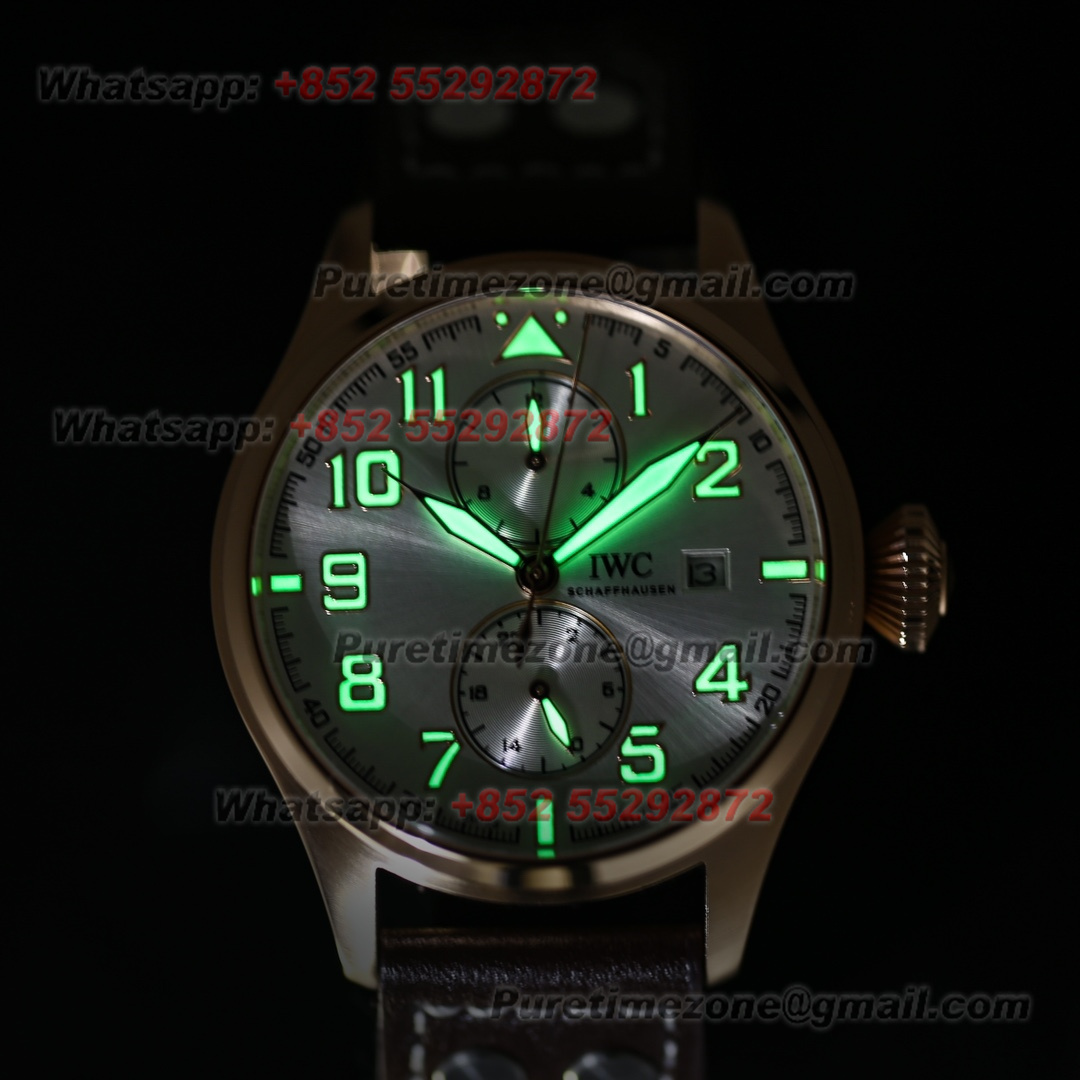 Big Pilot Monopusher Chronograph IW515204 Automatic Mens Watch Super Clone TWF 46 RG Silver Dial Brown Leather Strap A69385