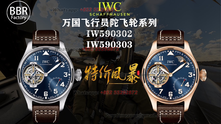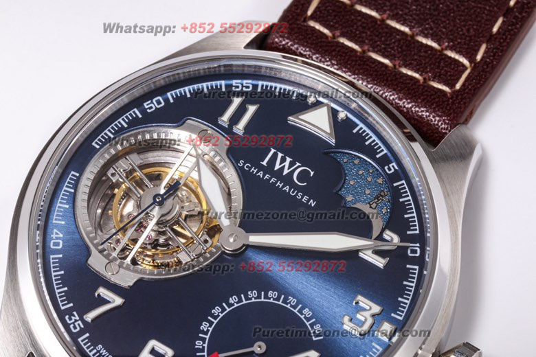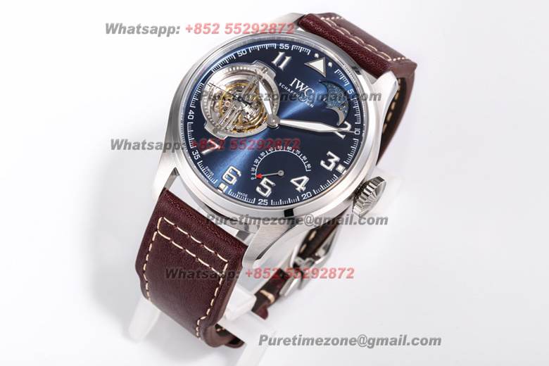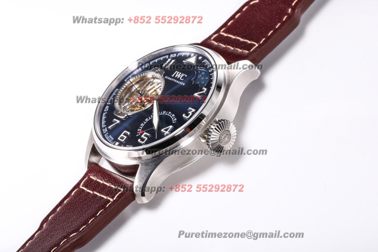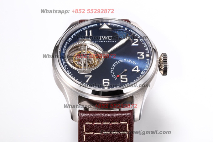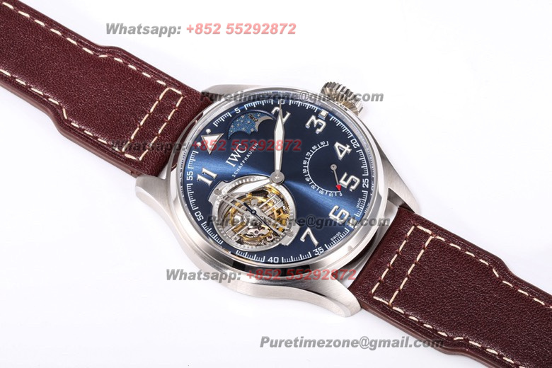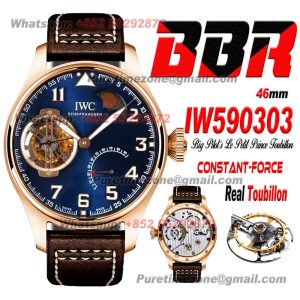 Big Pilot’s Constant-Force Tourbillon Manual Wind Mens Watch Super Clone BBRF 46 Blue Dial on Brown Leather Strap