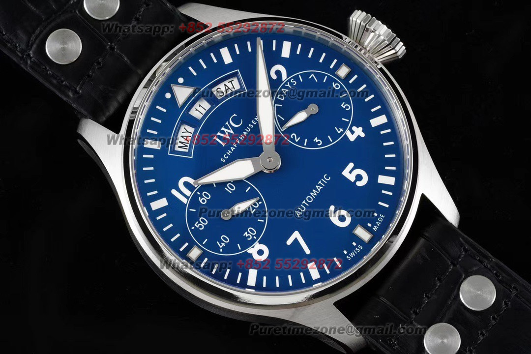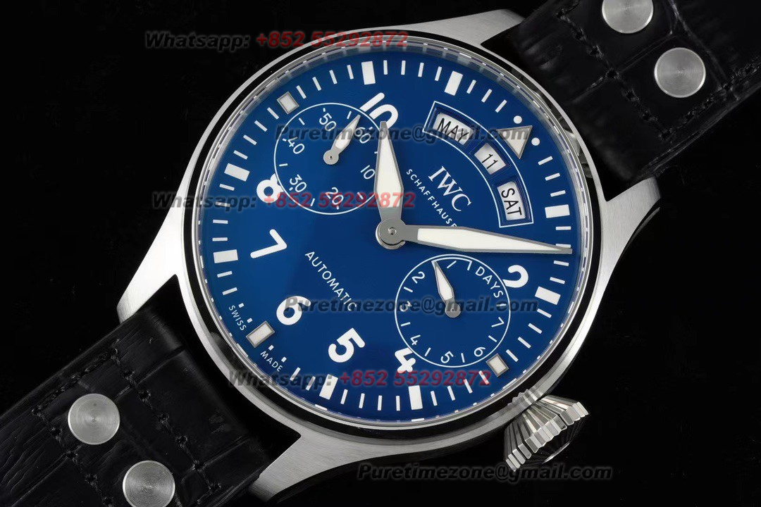 Big Pilot’s Watch Annual Calendar IW503502 Automatic Mens Watch Super Clone AZF 46 Blue Dial Black Leather Strap A52850