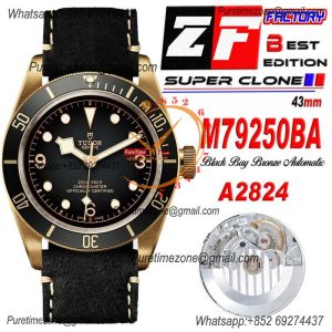 Heritage Black Bay Bronze Gray M79250BA A2824 Automatic Mens Watch Best Edition ZF 43mm Black Leather CHS $600.00 $500.00