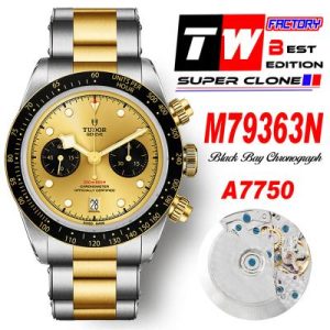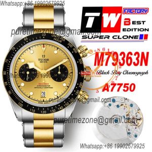 M79363N BLACK BAY CHRONO Automatic Chronograph Mens Watch TWF Two Tone Gold Dial Stainless Steel Bracelet Super Clone