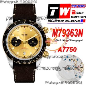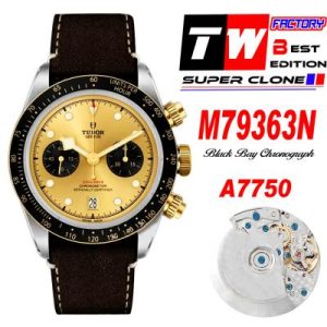 M79363N BLACK BAY CHRONO Automatic Chronograph Mens Watch TWF Two Tone Gold Dial Brown Leather Strap Super Clone