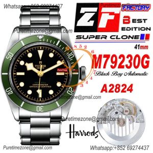 Black Bay”Green”Exclusive to Harrods A2824 Automatic Mens Watch Best Edition ZF 41mm Green Bezel Black Dial SS Bracelet