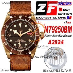 Heritage Black Bay M79250BM Bronze A2824 Automatic Mens Watch Best Edition ZF 43mm Blue Bezel Brown Dial Leather