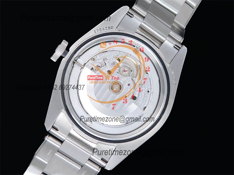 Movement:Asian 2824-2 25J Automatic movement at 28800vph with decorated movement bridges and rotor.