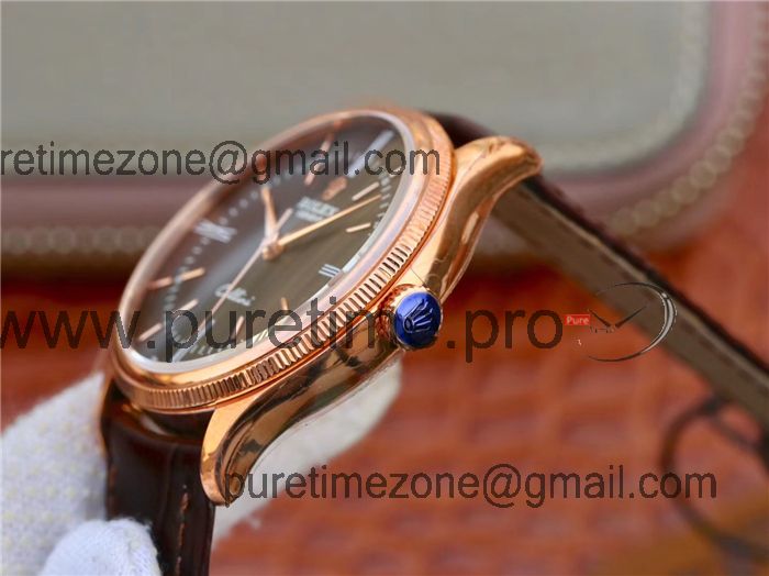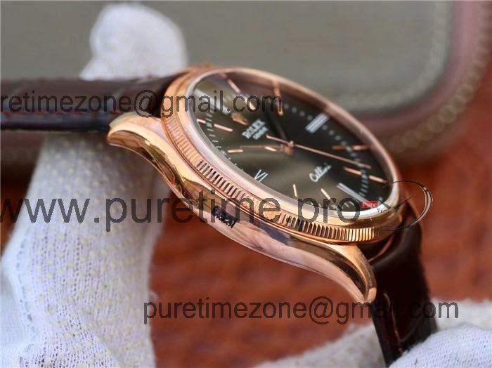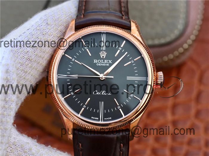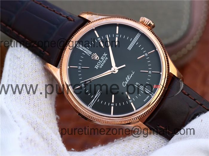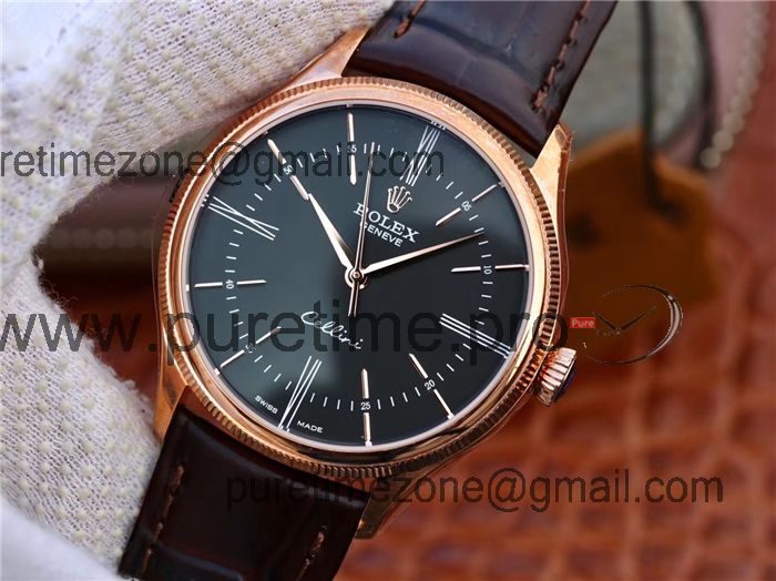 Home Rolex Cellini BSF Cellini Time 50505 A3132 Automatic Mens Watch Rose Gold Black Dial Leather Strap Best Edition