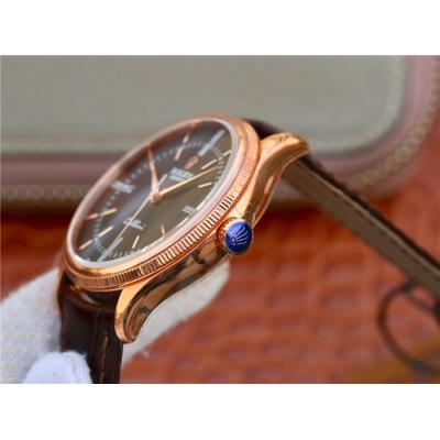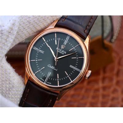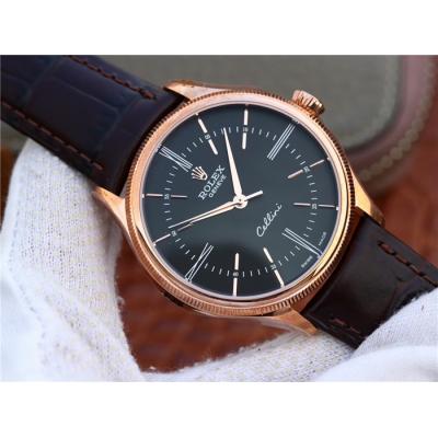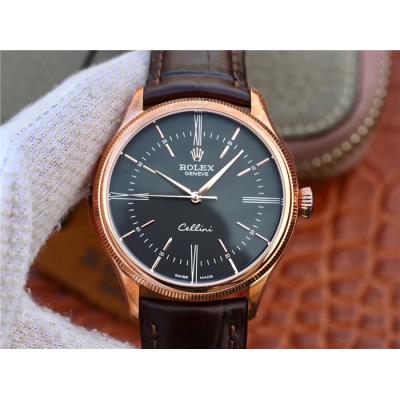 Home Rolex Cellini BSF Cellini Time 50505 A3132 Automatic Mens Watch Rose Gold Black Dial Leather Strap Best Edition