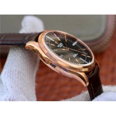 TWF Cellini Date 50515 A3165 Automatic Unisex Watch RG Black Dial Sticks Brown Leather Best Edition