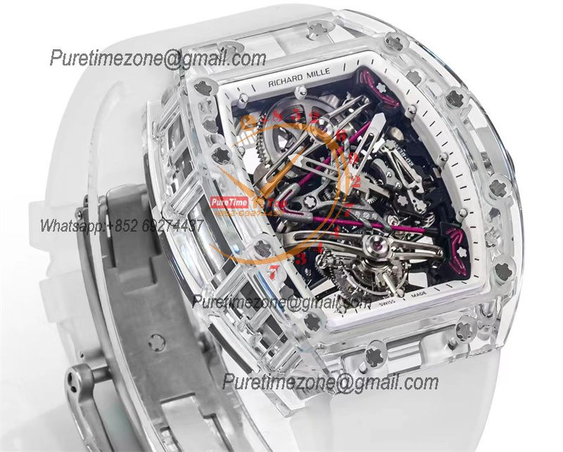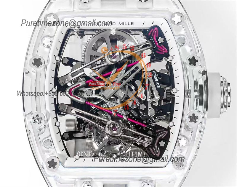 Bubba Watson RM38-02 Manual Wind Real Tourbillon Mens Watch RMF Best Edition Transparent Case And Rubber CHS