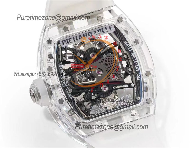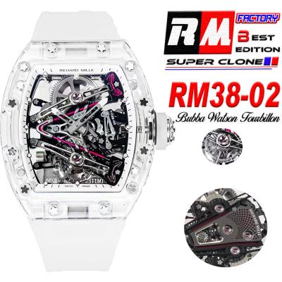 Home Richard Mille Bubba Watson RM38-02 Manual Wind Real Tourbillon Mens Watch RMF Best Edition Transparent Case And Rubber CHS